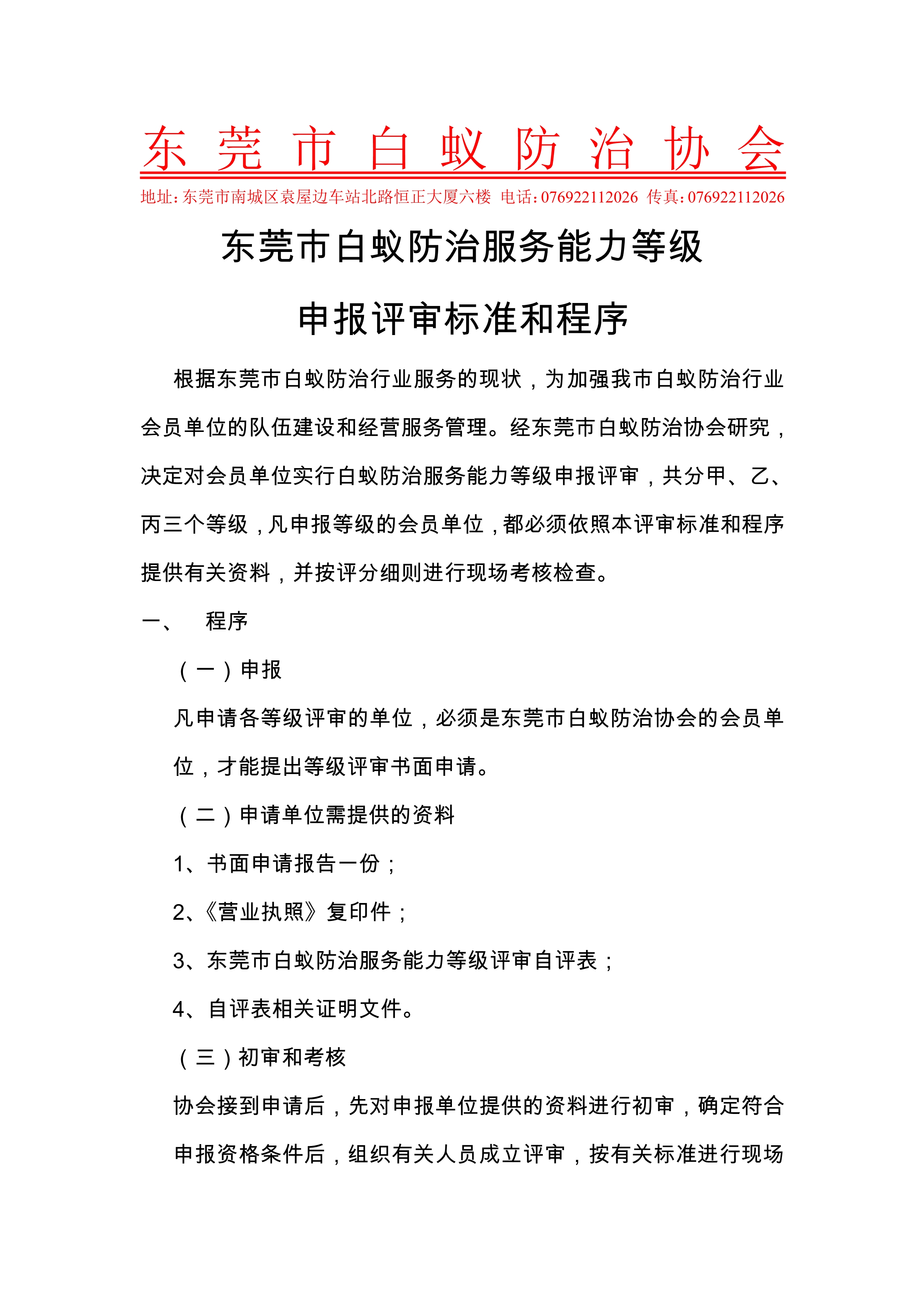 东莞市白蚁防治服务能力等级申报评审标准和程序